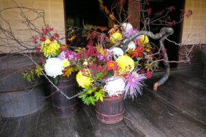 菊花を中心とした迫力あるフラワーアレンジメントの数々で彩られた古民家の姿をお楽しみください。