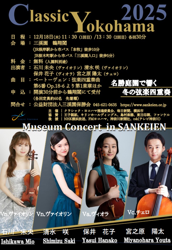 主催| クラシック・ヨコハマ推進委員会、毎日新聞社、横浜市にぎわいスポーツ文化局文化振興課、公益財団法人三溪園保勝会