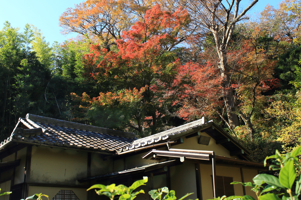 12月12日(木) 外苑では旧東慶寺仏殿や旧矢箆原家住宅付近の紅葉も色づきが増して見ごろです。