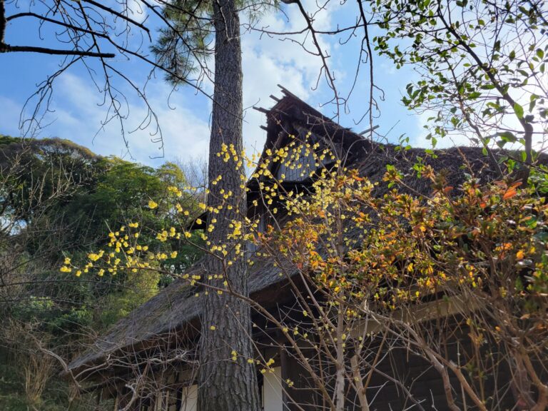 旧矢箆原家住宅付近では、(ウメではありませんが)ソシンロウバイが見ごろを迎えています。
