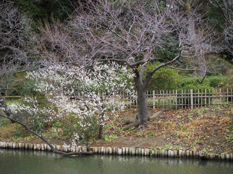 大池沿いの白梅も咲き進んでいます。