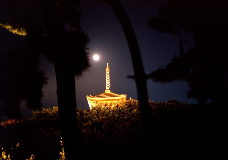 中秋の名月を愛でる観月会が今年3年ぶりに再開となる。三重塔をはじめ池に浮かぶ舟や竹林など庭園の各所がライトアップされるロケーションの中で、月とともに雅楽や琵琶、ジャズなどが日替わりで上演されるプログラムは風情たっぷりだ。その舞台となる建物も6年ぶりに内苑・臨春閣に戻される。5年にわたった同建物の大規模修繕の期間中は、外苑の旧燈明寺本堂を代替の会場に充てていたが、久しぶりに本来の観月会のスタイルでの開催となる。